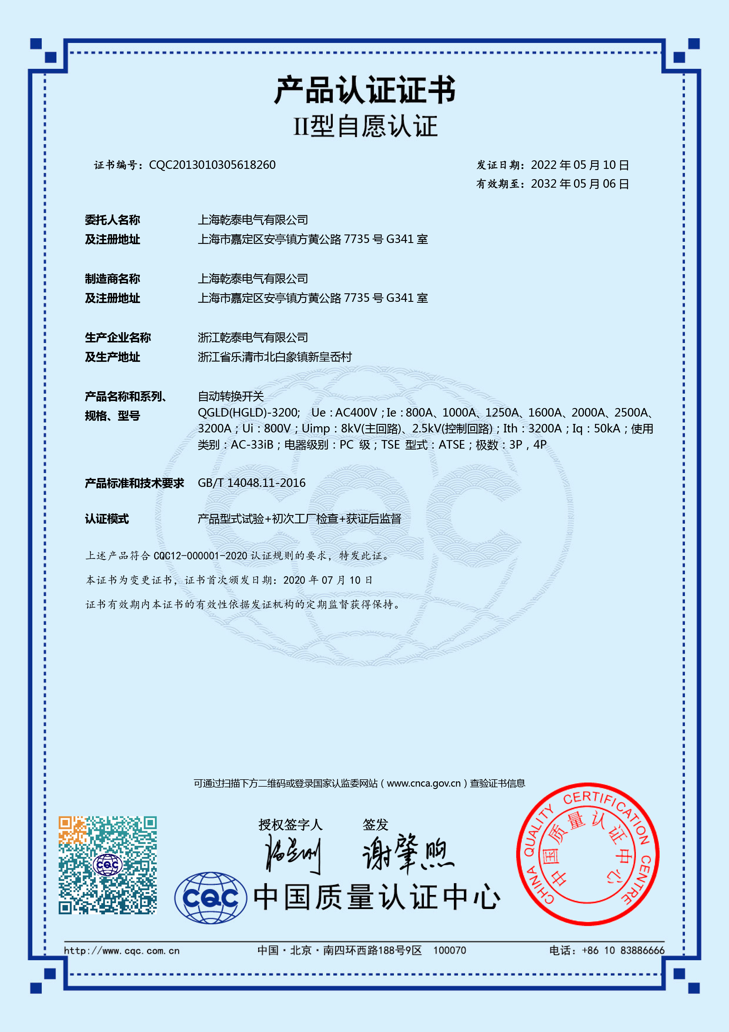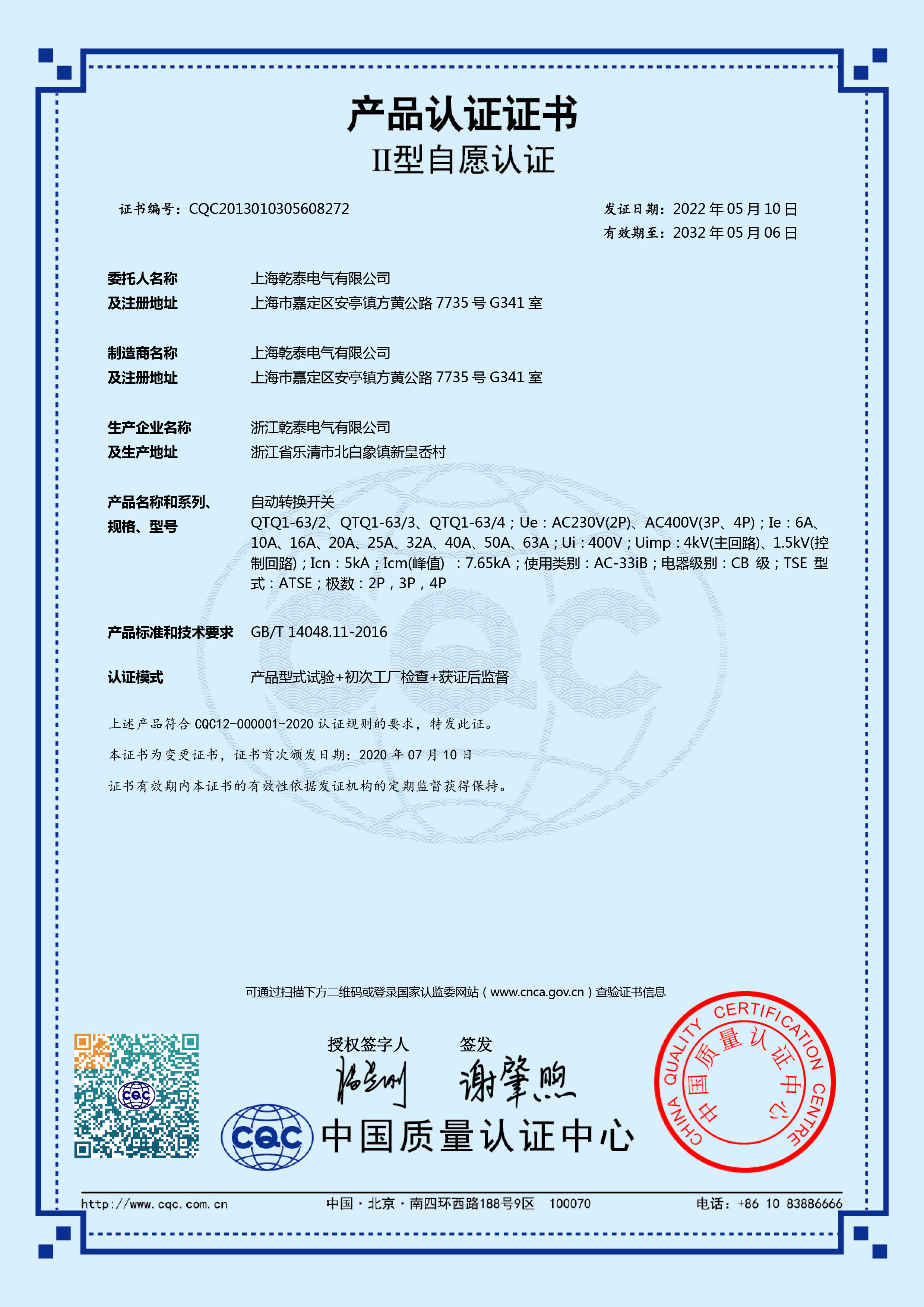 CQC自愿认证证书-双电源