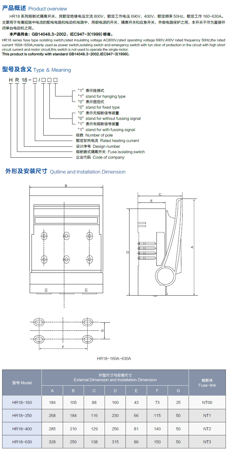 HR18系列熔断器式隔离开关