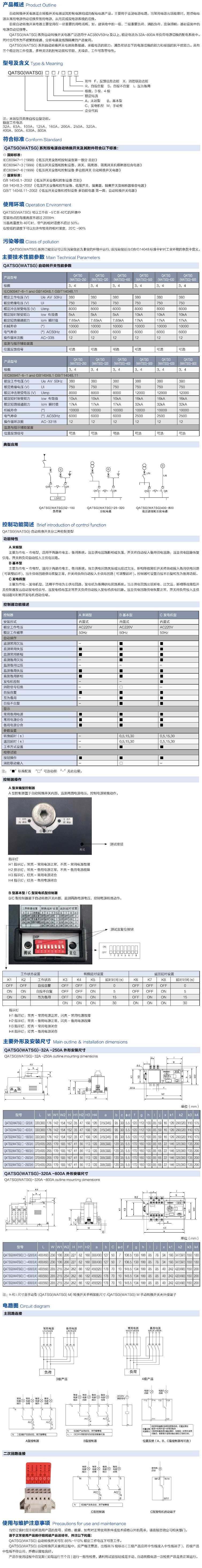 QATSG(WATSG)系列双电源自动转换开关